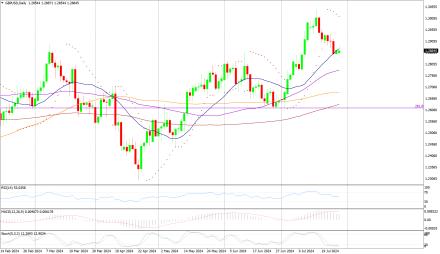 On daily charts, prices are sustaining above 50DMA (1.2674) is becoming a support level. 14-D RSI is currently in a neutral region and direction is difficult to predict on an RSI basis. The Stochastic Oscillator is in oversold territory and gives a positive crossover to confirm a bullish stance. MACD is above the zero line, but histograms are increasing leading to movement.