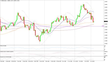 On daily charts, prices are sustaining above 50DMA (1.2674) is becoming a support level. 14-D RSI is currently in a neutral region and direction is difficult to predict on an RSI basis. The Stochastic Oscillator is in oversold territory and gives a positive crossover to confirm a bullish stance. MACD is above the zero line, but histograms are increasing leading to movement.